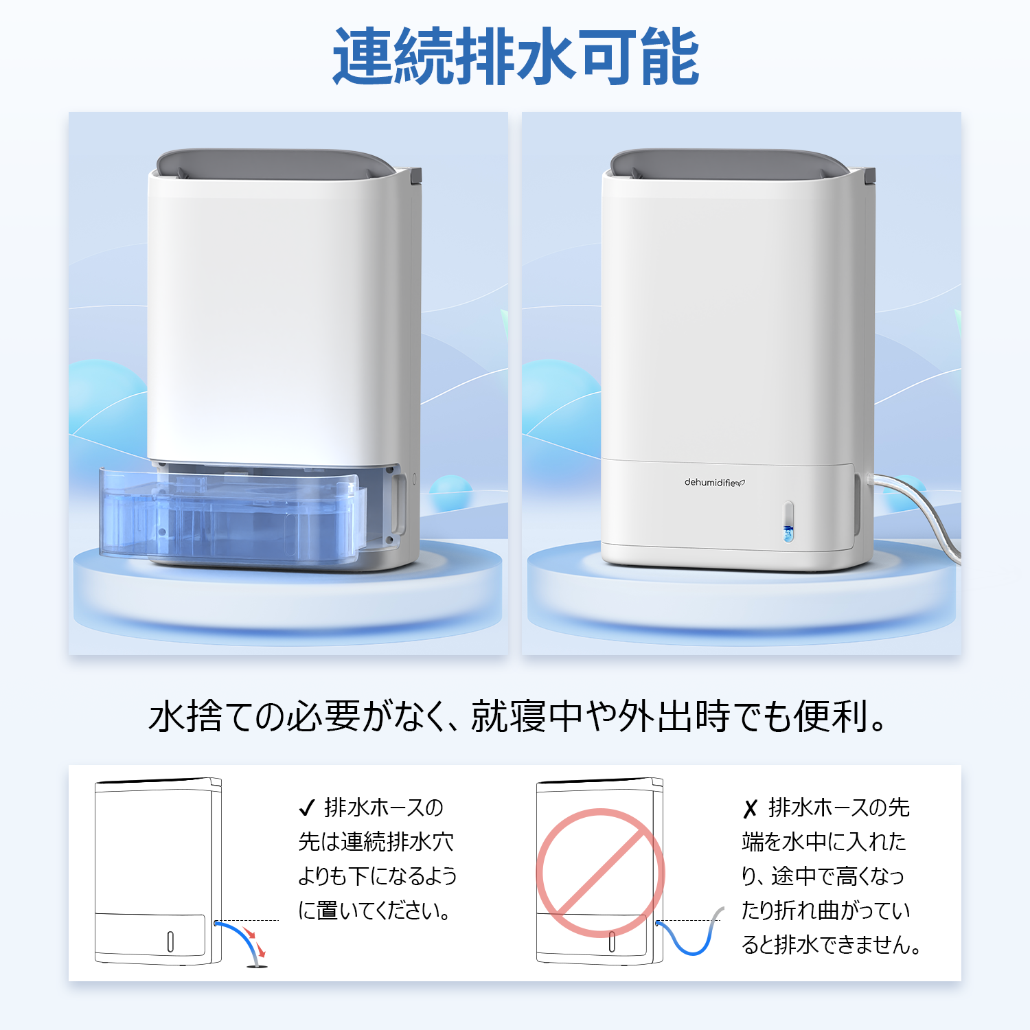 - 【様々な場所に適用&24時間サポート】コンパクトサイズなので寝室、リビングだけでなく、トイレ、押入れやお風呂場など狭い場所の除湿にも対応できます。持ち手のある除湿機は持ち運びやすいです。【パッケージ内容】除湿機本体*1、10年交換不要フィルター*1、1.5m排水ホース*1、取扱説明書*1。正しい使用方法において、万が一初期不良やその他不具合が生じた場合は、アマゾン「注文履歴」にて当該注文の「出品者に連絡」ボタンより販売店までご連絡いただければ24時間以内迅速に対応いたします。